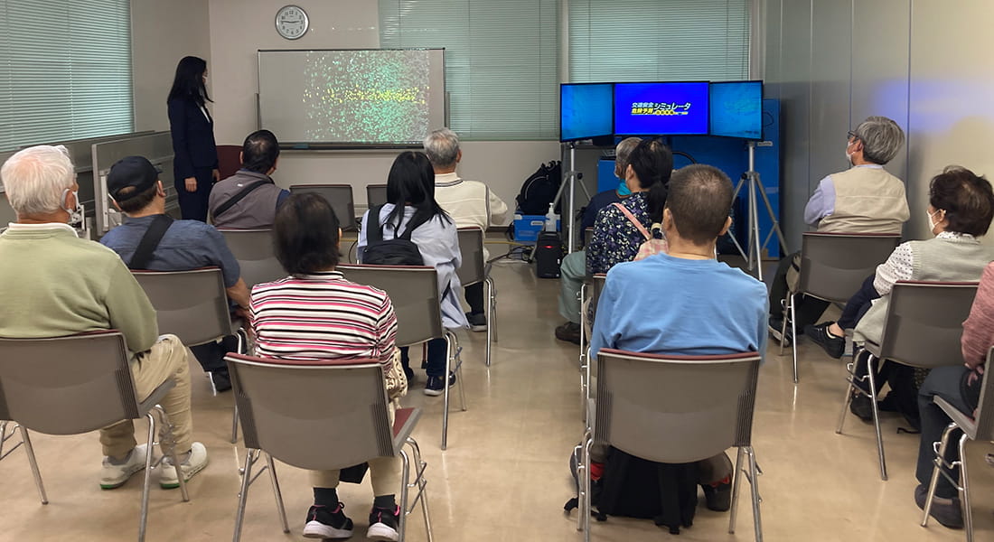 主な交通事故パターンが再現され、ドライバーとして事故を回避できるかをゲーム感覚で体験できるシミュレーターです。見ている分には簡単そうに思えましたが、実際に操作してみると、多くの方が交通事故を起こす結果となりました。 「日常の運転を見直す機会となりました。安全運転への意識がより高まりました」と参加した高齢者からも好評でした!